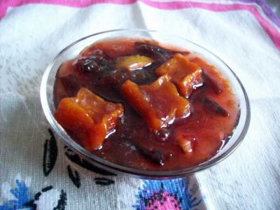 Моя мама, иногда рассказывала о том, что готовилось у них дома, когда она была ребёнком. И одним из таких "рассказанных" мне блюд было варенье из слив с тыквой. При этом мама вспоминала, что она и её сёстры норовили первым делом выловить куски тыквы, так как они пропитывались сливовым сиропом и становились очень вкусными. Не знаю почему, но сама мама такое варенье никогда не варила, хоть и была прекрасной кулинаркой... А сейчас, мне вдруг вспомнились эти рассказы и я решила сварить немного такого варенья на свой страх и риск, так как точного рецепта у меня, разумеется, нету.