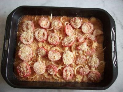Покрыть кружочками помидор.